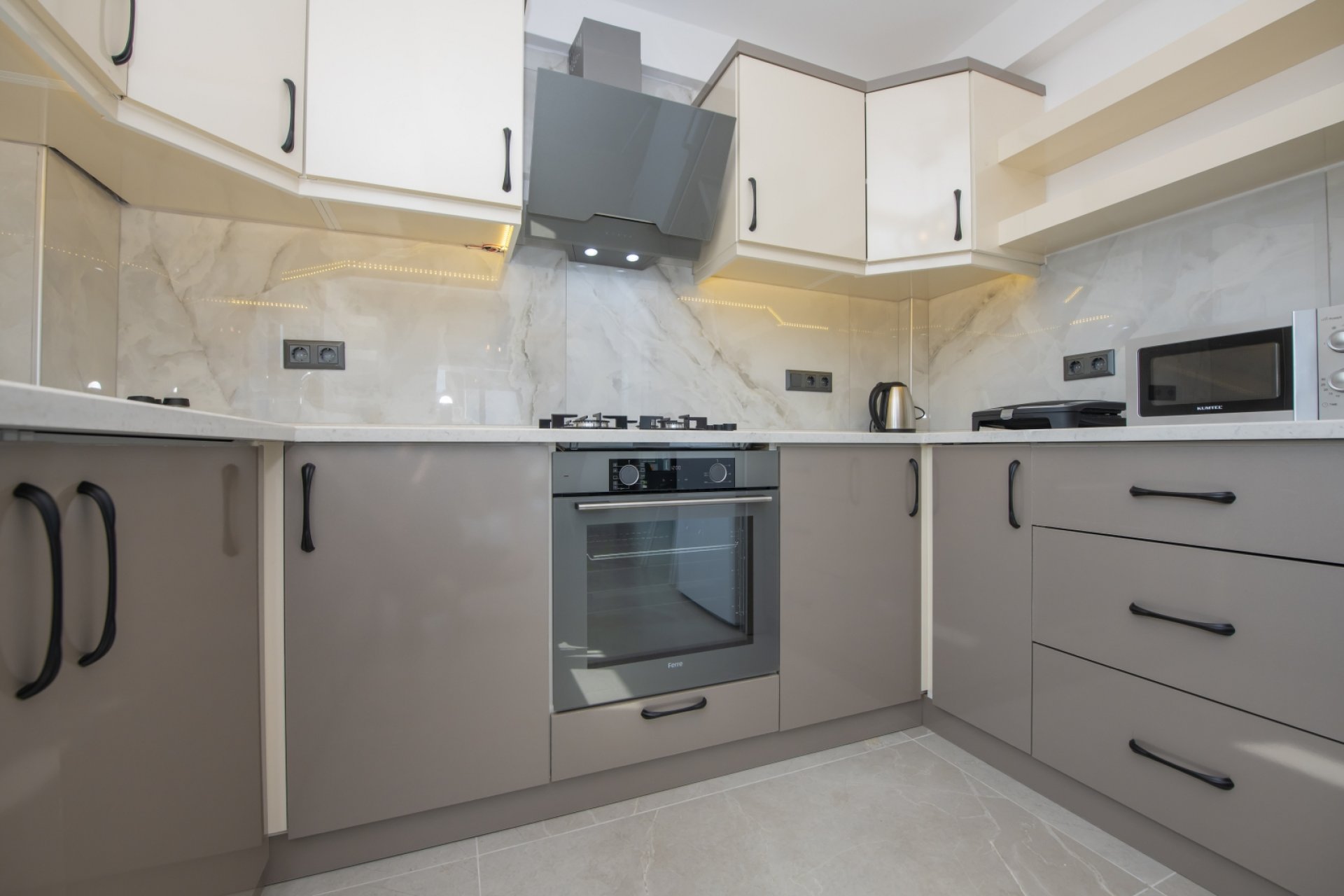 - Mutfak: Açık planlı mutfak, 6 ve daha fazla kişi için yeterli mutfak malzemeleri, bulaşık makinesi, çamaşır makinesi, fırın, ocak, buzdolabı, mikrodalga fırın, tost makinesi, çaydanlık ve kettle.