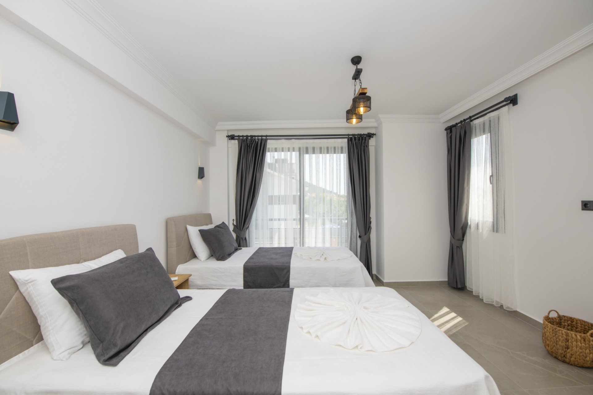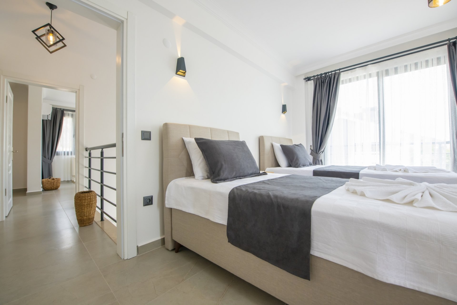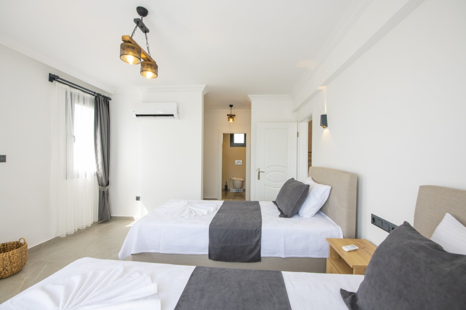 - Yatak Odası 2: 2 adet tek kişilik yatak, klima, ebeveyn banyosu, elbise dolabı.