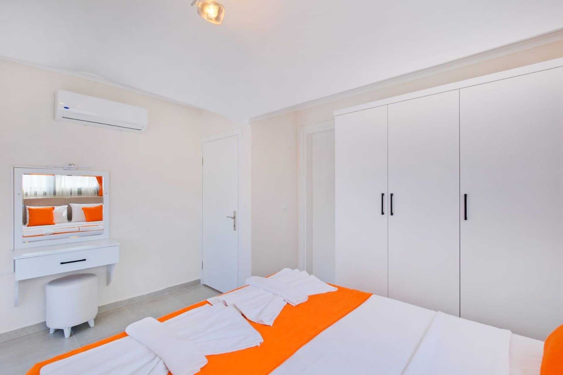 1. Yatak Odası: Çift kişilik yatak, ebeveyn banyosu, klima ve balkon.