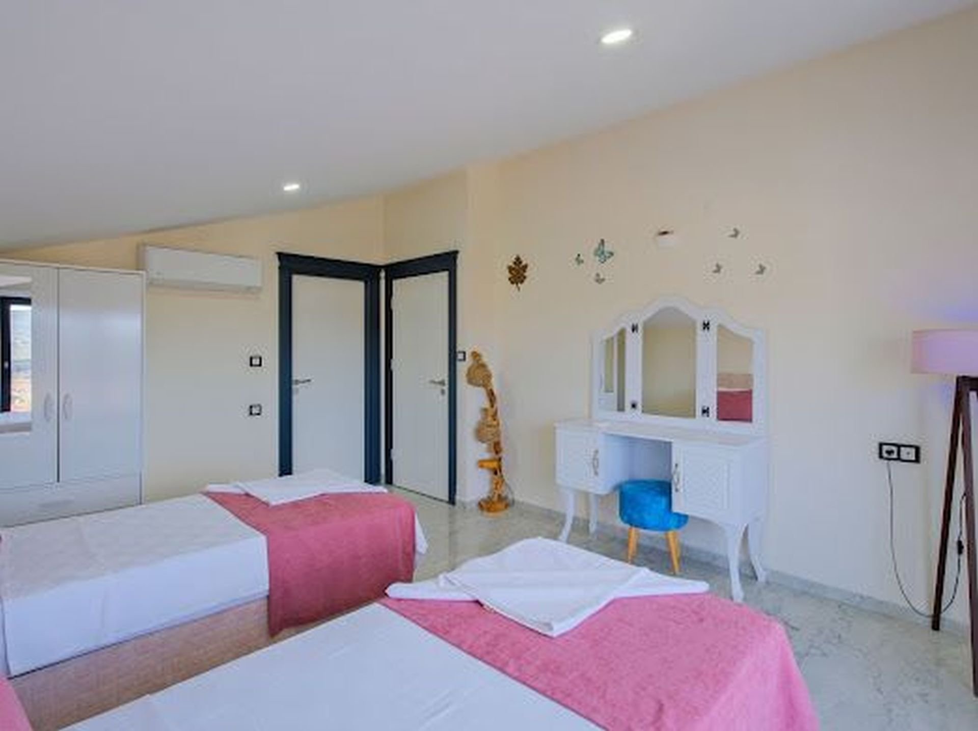 - Yatak Odası 4: İki tek kişilik yatak, klima, WC + Duş