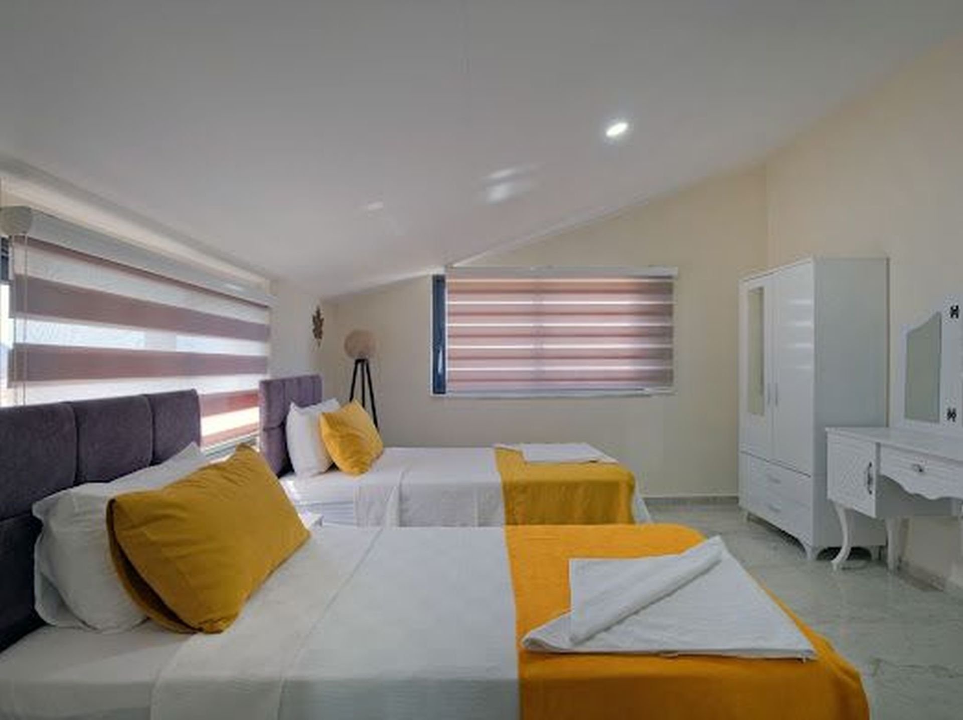 - Yatak Odası 3: İki tek kişilik yatak, klima, WC + Duş